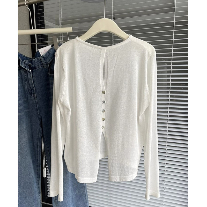 纯色防晒空调衫夏季设计感后背镂空开叉T恤百搭长袖上衣女外穿潮