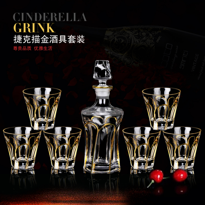 水晶酒具 洋酒瓶套装 金色酒瓶 高档酒瓶套装