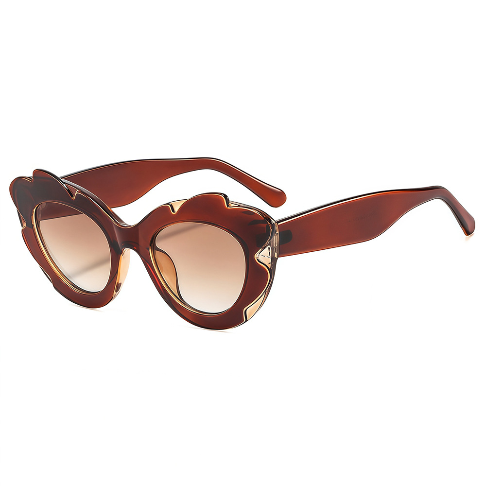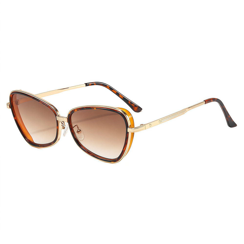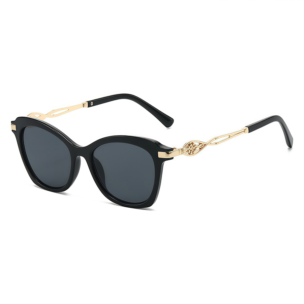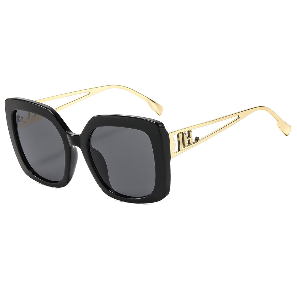 新款简约休闲防晒大框猫眼太阳镜 ins时尚个性镂空雕花金属腿墨镜