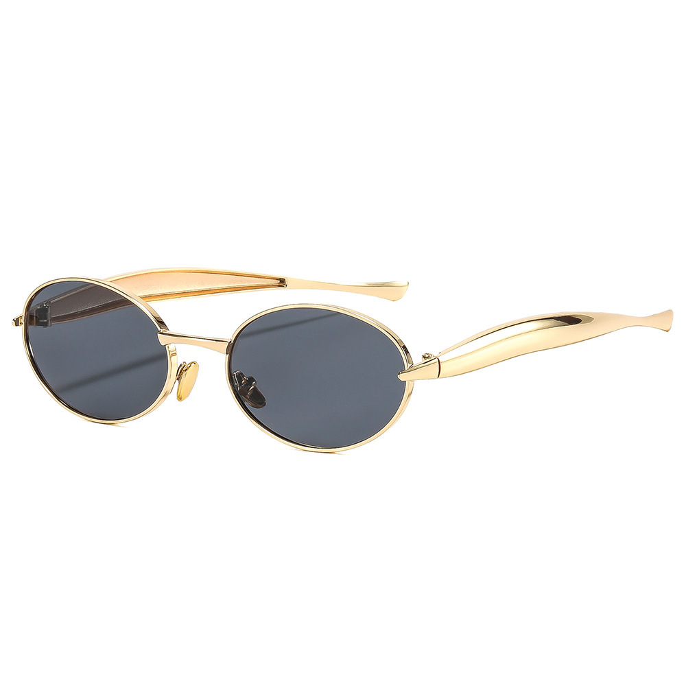 新款时尚椭圆金属网红ins街拍太阳镜 高级感女墨镜个性沙丁鱼眼镜
