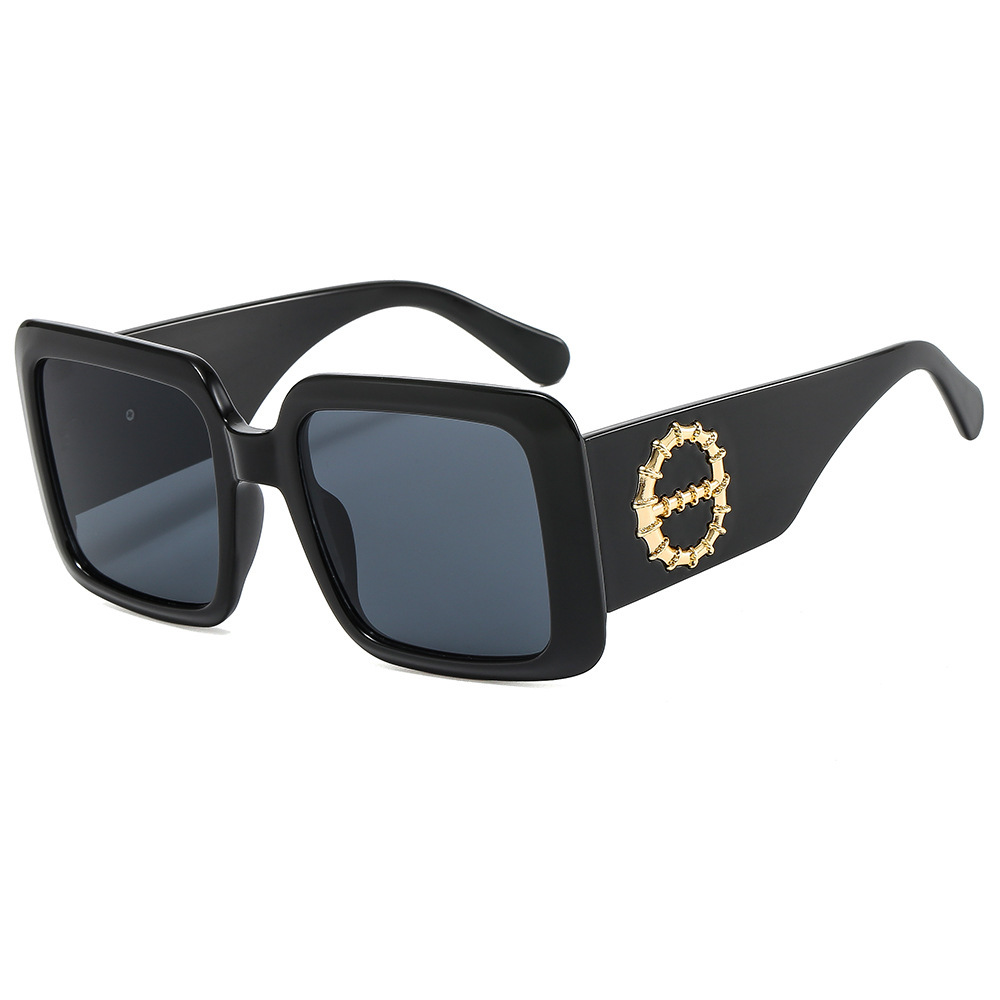 新款欧美复古时尚方形大框太阳镜 ins简约休闲个性竹节腿百搭墨镜