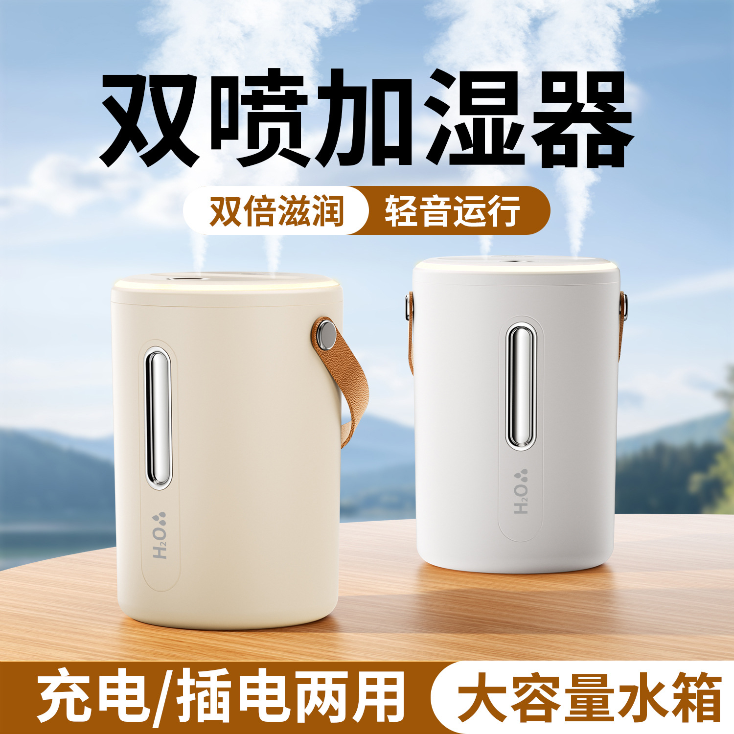 加湿器大容量双喷无线 家用静音便携办公室大雾量桌面空气净化器