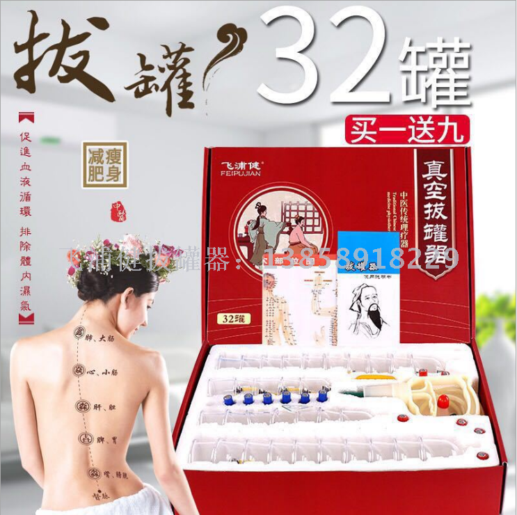 专供出口 拔罐器32罐装加厚家用抽气式拔火罐真空气罐非玻璃正品