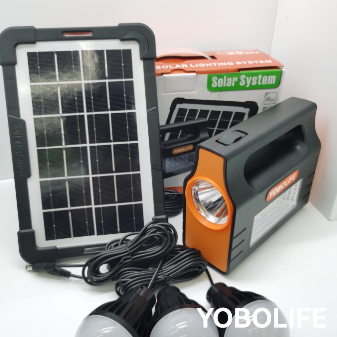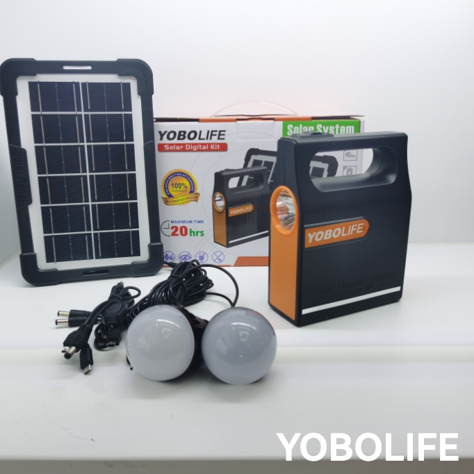 YOBOLIFE太阳能小系统太阳能手电筒户外照明2个灯泡照明一拖五线