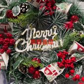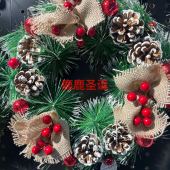 新款圣诞装饰花环 手工仿真圣诞节花环门挂橱窗道具布置装饰批发