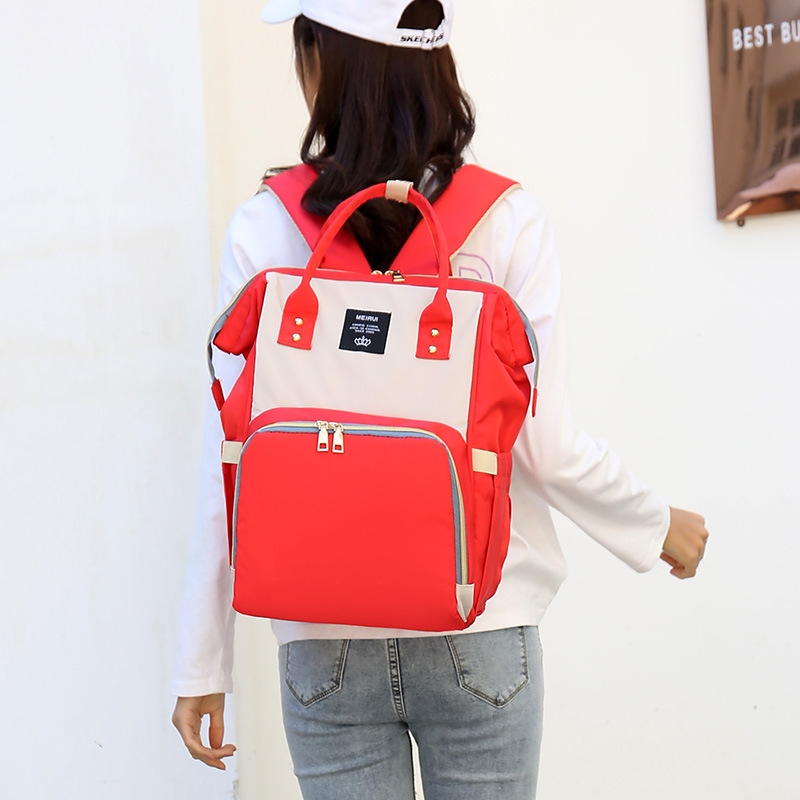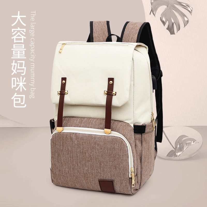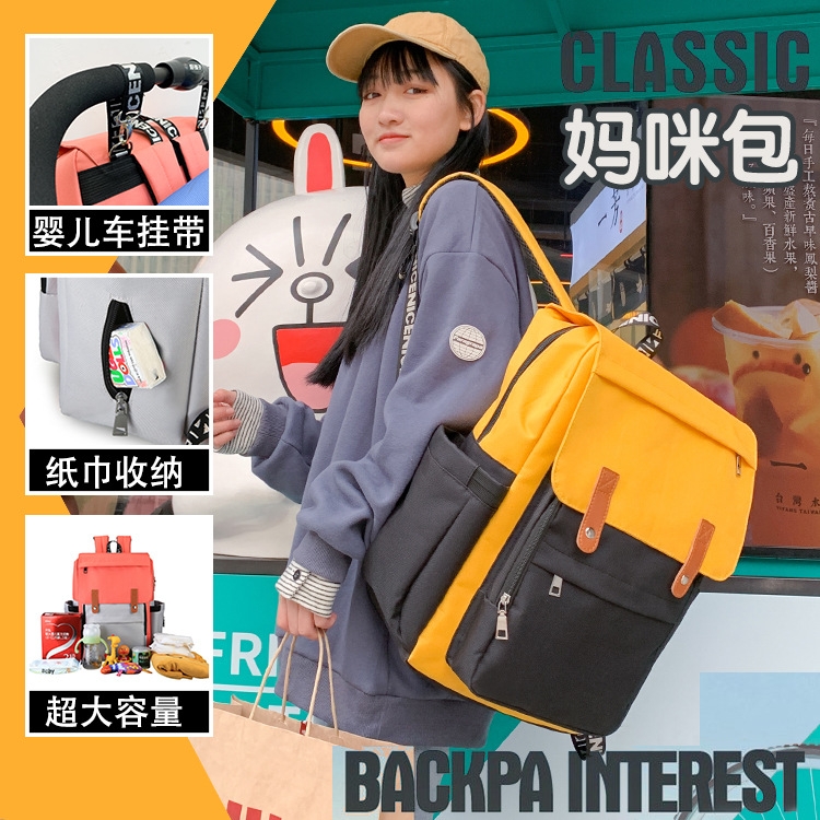 logo定制新款时尚潮流双肩包 拼接撞色外出妈咪包 奶瓶收纳母婴包