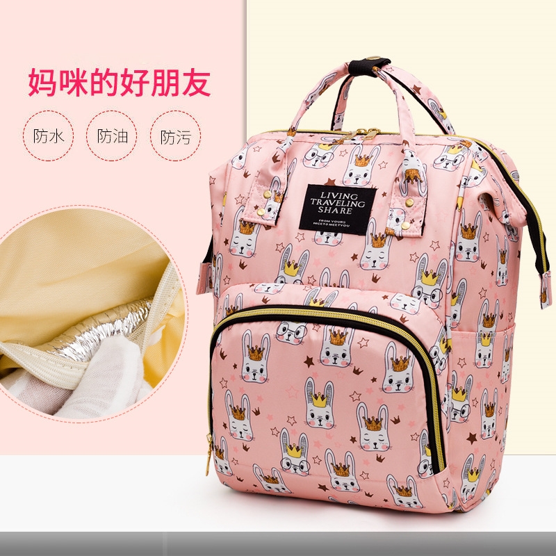 妈咪包卡通印花防水产妇包多功能大容量母婴包奶瓶双肩包背包轻便