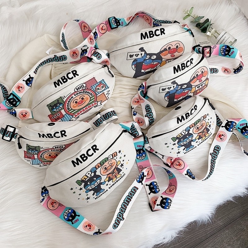 儿童日韩新款面包超人帆布腰包胸包男女宝宝可爱卡通单肩斜挎背包