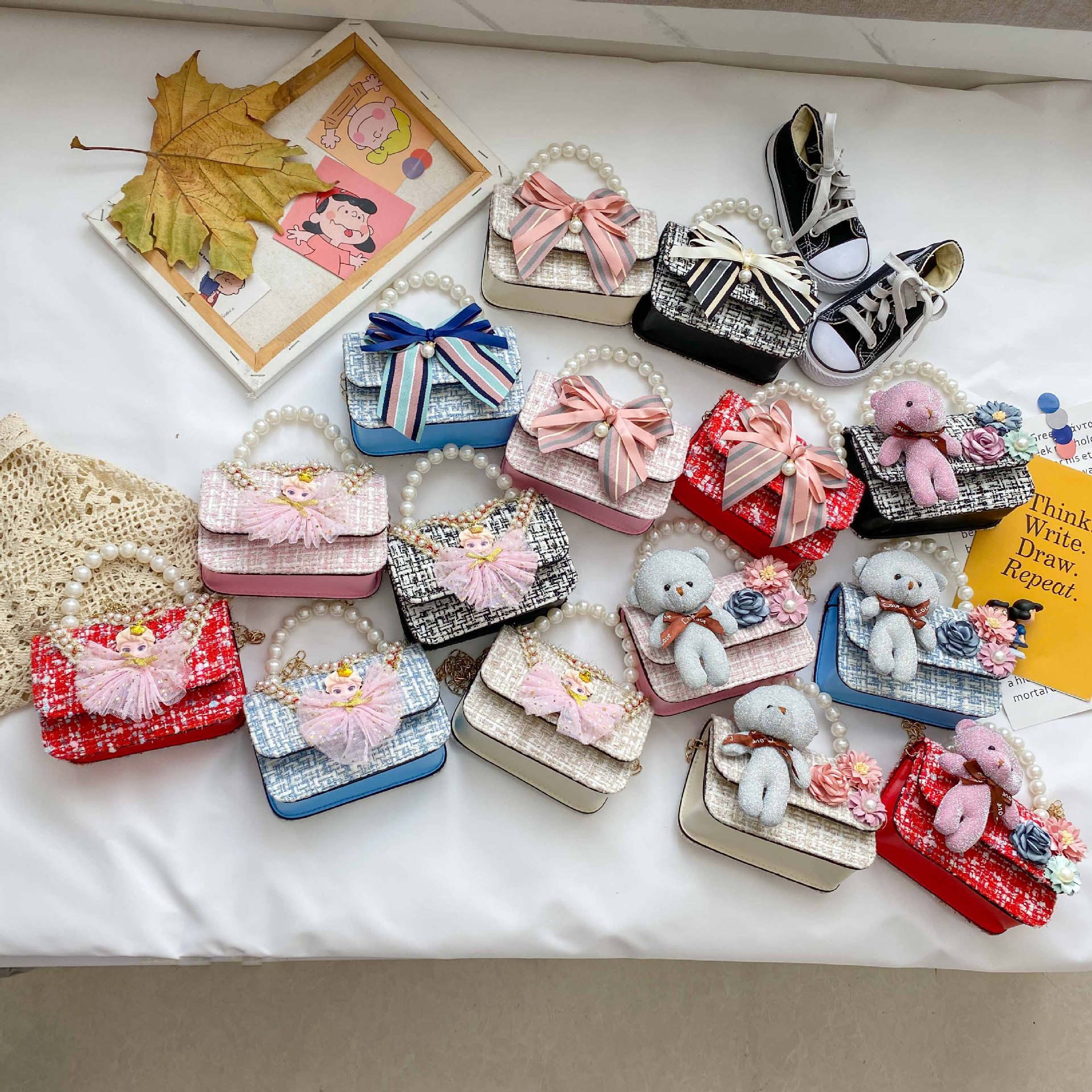 儿童小圆包新款 韩版百搭女童斜挎包 花朵拼接棉麻小包宝宝单肩包