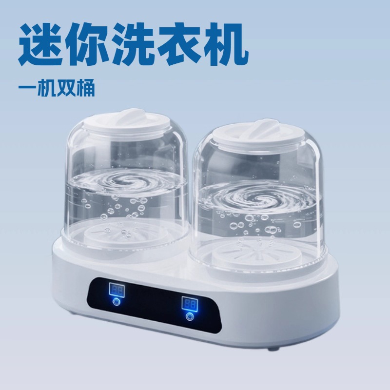 新款跨境双杯洗衣杯免安装,双桶洗袜子神器内衣裤小型迷你洗衣机