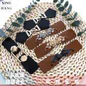 厂地新款编织花纹PU皮百搭金属皮对扣服饰大衣皮草围脖扣搭扣袖带
