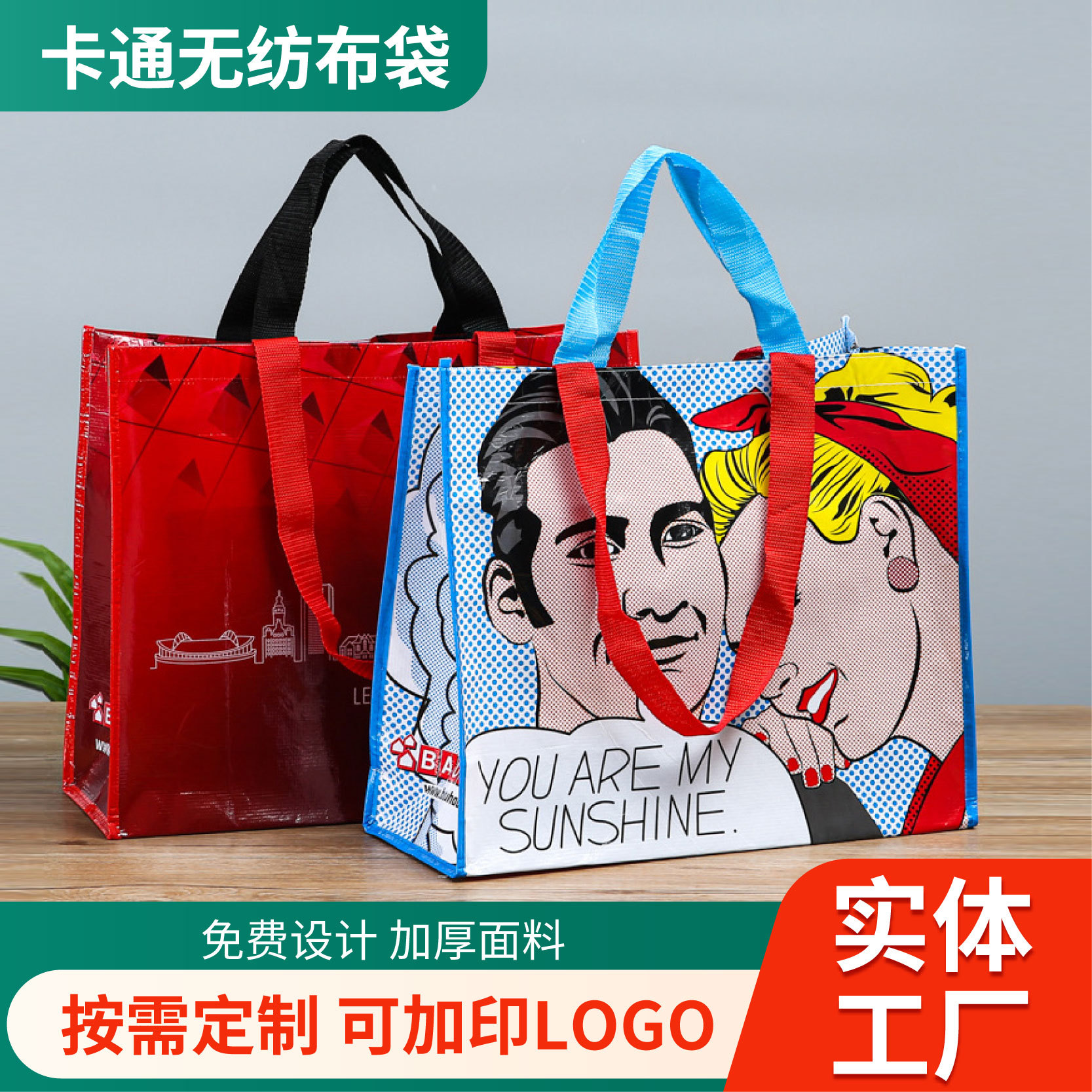 圣诞节礼品袋厂家批发无纺布定制跨境覆膜手提热压广告购物立体袋