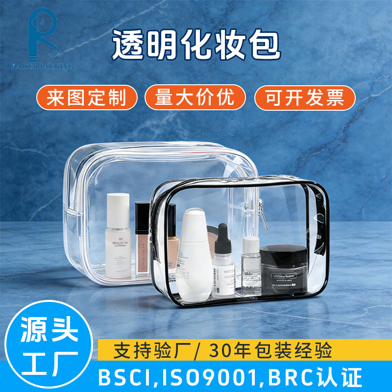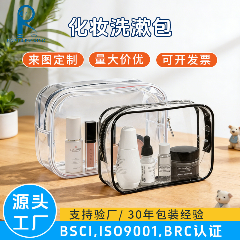 厂家定 制旅行化妆包批发透明防潮PVC拉链袋便携洗漱收纳包印logo