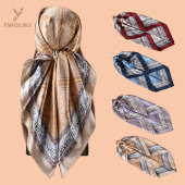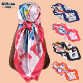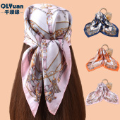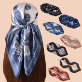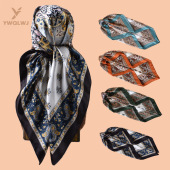 新款90色丁复杂精美图案印花方巾外搭防晒包头丝巾装饰围巾批发