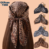 2025夏季新款优雅豹纹印花70X70方巾缎面雪纺 方巾批发源头工厂