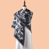 2025新款马车赛马马具印花人字绒围巾大三角巾旅游防晒披肩批发