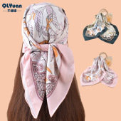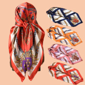 新款女士90CM色丁马车印花方巾外搭防晒包头丝巾装饰围巾批发