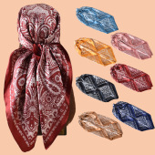 2025新款90色丁鲜艳腰果花印花方巾外搭防晒包头丝巾装饰围巾批发