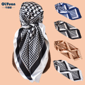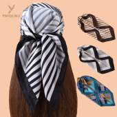 新款女士70CM方巾几何线条印花丝巾缎面雪纺批发源头工厂scarf