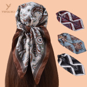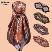 新款女士70CM方巾优雅腰果印花丝巾缎面雪纺批发源头工厂scarf