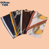 2025夏季新款马鞍链条马镫印花70CM缎面雪纺 方巾包头巾围巾批发