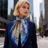新款女士90CM色丁青花瓷印花方巾外搭防晒包头丝巾装饰围巾批发