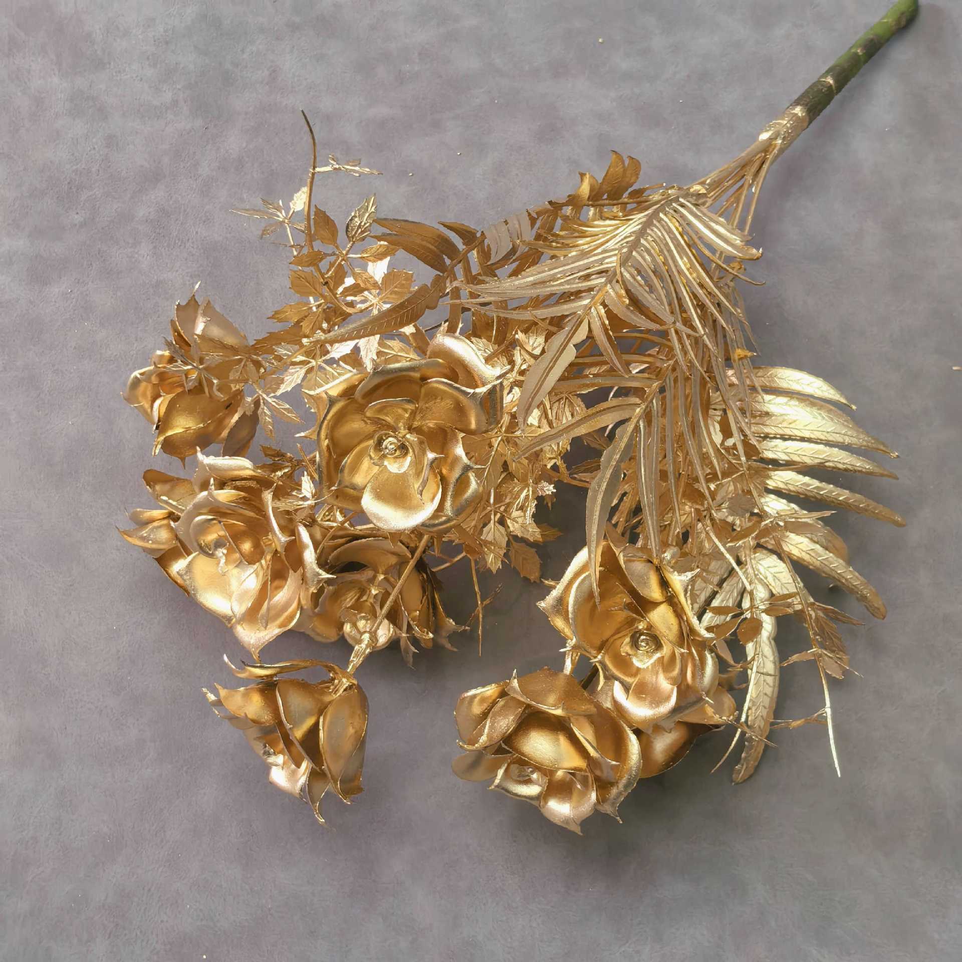 金色系仿真假花叶材节日装饰礼堂布置婚庆地排花塑料花高级感插花