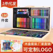 厂家直销水彩笔套装 儿童礼盒蜡笔180木盒画笔绘画工具礼物批发
