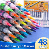 双头直液式丙烯马克笔24/48色软头叠色学生美术DIY儿童手绘画笔