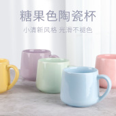 马克杯印logo办公室咖啡杯家用糖果色大容量陶瓷水杯简约马卡龙色