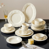 碗碟餐具套装浮雕盘子景德镇陶瓷饭碗菜盘宫廷风高级感法式酒店家
