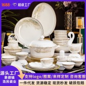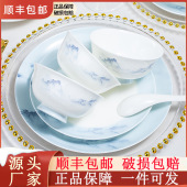 景德镇陶瓷碗碟套装家用乔迁送礼高级感中式骨瓷碗筷组合一件代发
