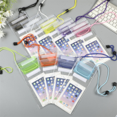 现货三折透明手机防水袋可触屏魔术贴防水防尘密封挂脖手机袋批发