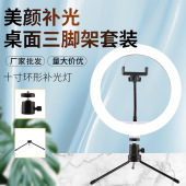 10寸桌面三脚架补光灯套装 化妆直播自拍环形灯 拍照录影打光灯
