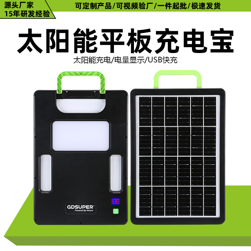新款跨境户外太阳能平板充电宝便携式电显快速充电单晶硅太阳能板