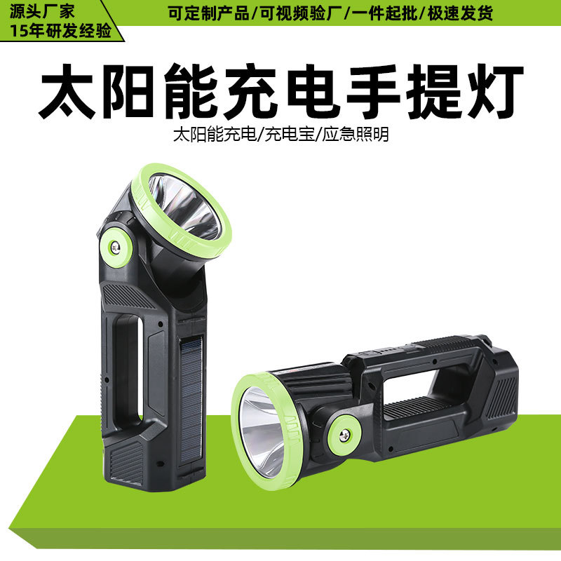 跨境新款太阳能手提灯多功能户外充电宝手电筒带侧灯户外巡逻照明