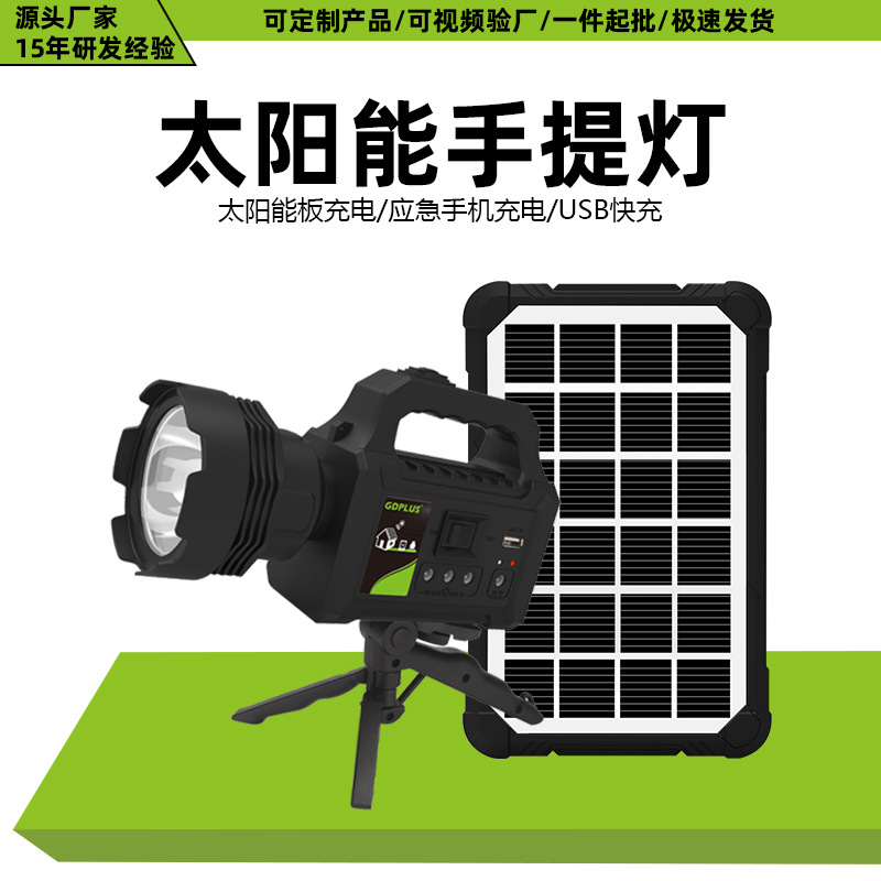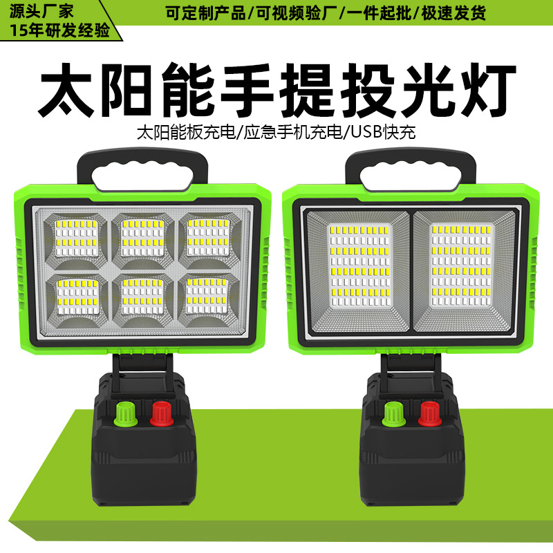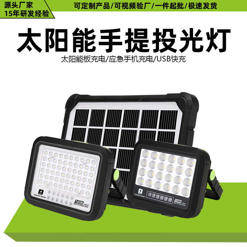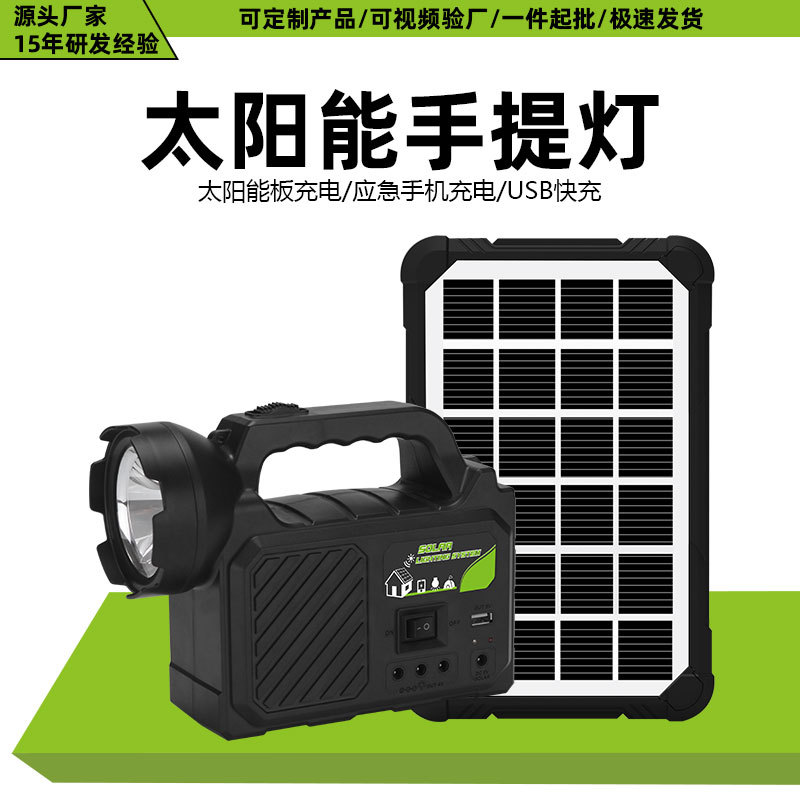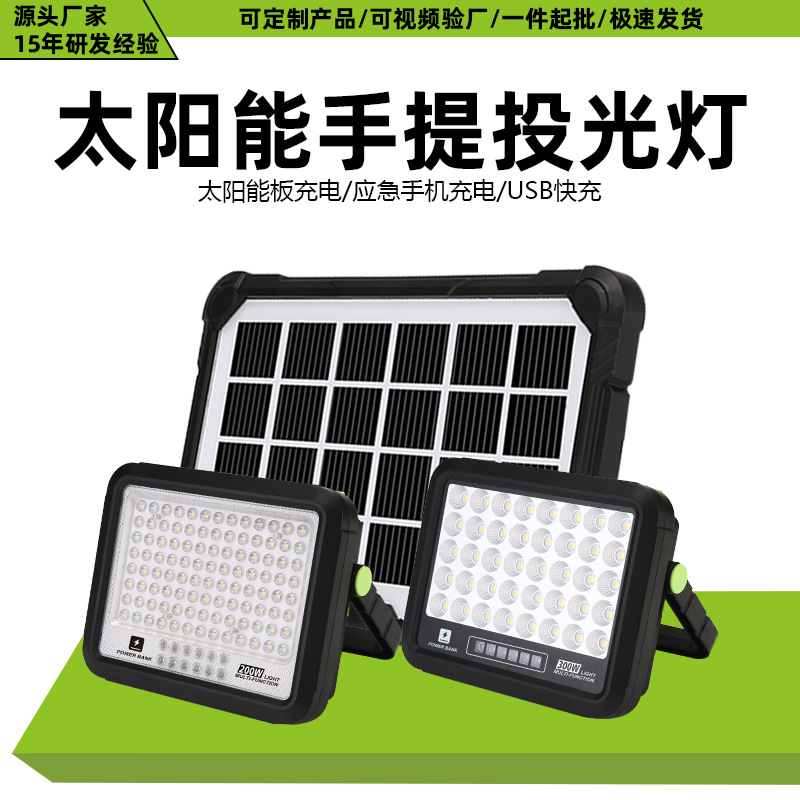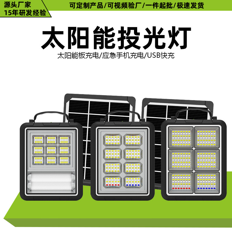 跨境新款太阳能投光灯户外多功能应急手提灯太阳能充电照明系统灯
