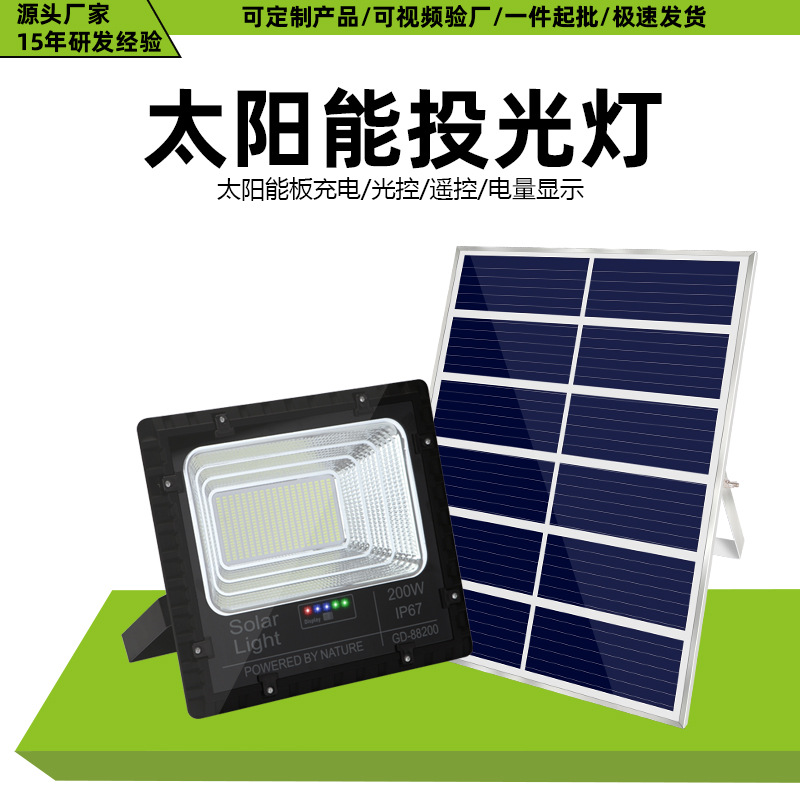 跨境新款太阳能投光灯大容量长续航家用庭院灯商用户外防水探照灯
