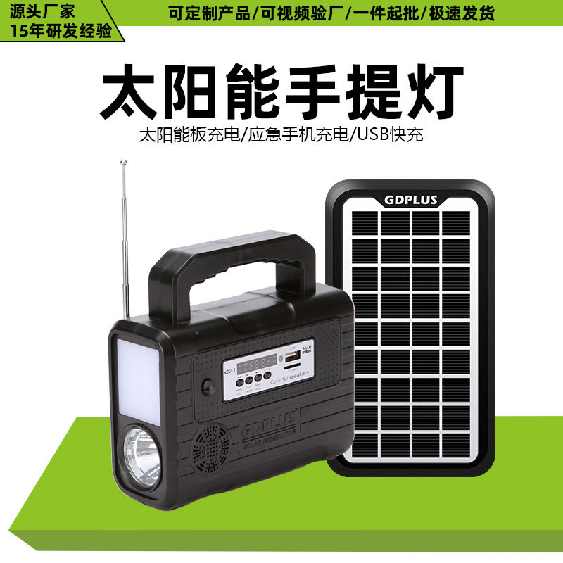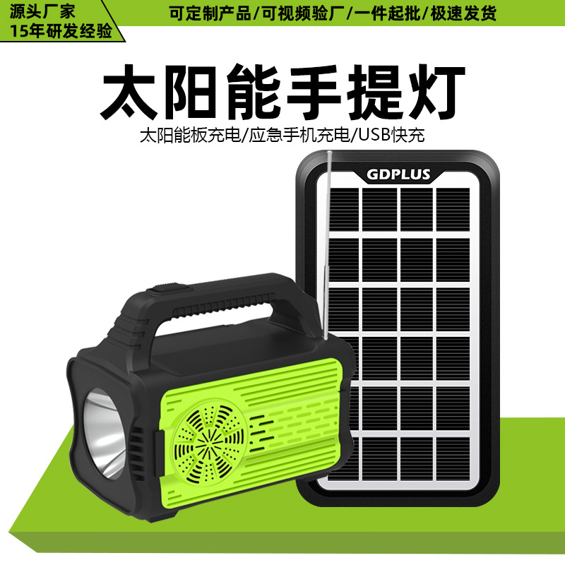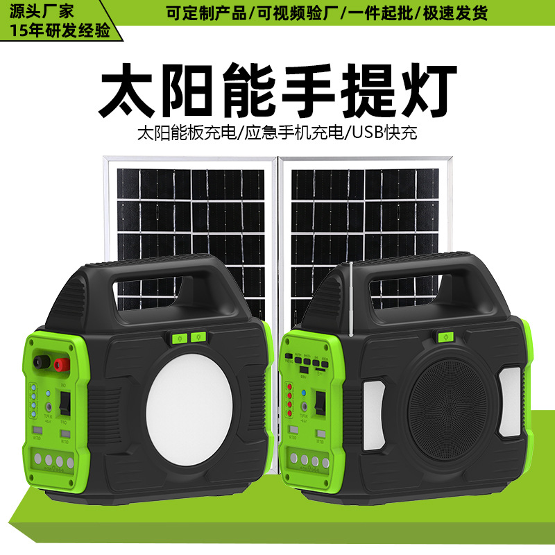 跨境新款太阳能充电手提灯多功能蓝牙音响收音机户外移动储能系统