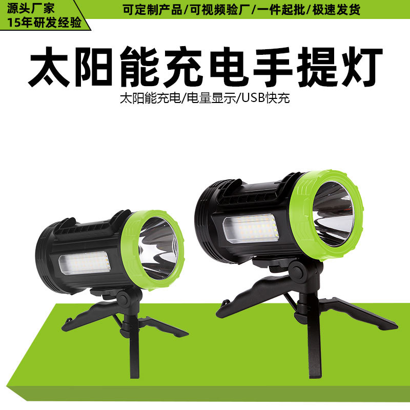 新款太阳能手提灯多功能户外支架探照灯防水长续航高亮远射应急灯