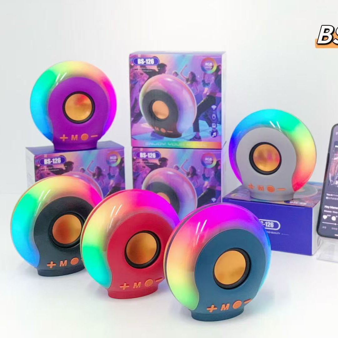 BS-126 跨境新品无线蓝牙音箱TWS便携炫彩灯户外桌面插卡蓝牙音响
