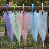 创意彩色透明伞长柄磨砂塑料环保雨伞广告伞定制logo一次性雨伞