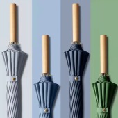 复古森系直杆实木柄雨伞制订创意24骨素色小清新长柄伞防风晴雨伞