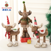 可伸缩设计俏皮可爱圣诞麋鹿摆件 圣诞节日气氛布置彩色伸缩公仔