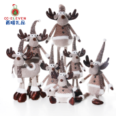 圣诞节装饰品场景布置麋鹿可伸缩桌面玩偶diy装扮摆件外贸批发