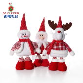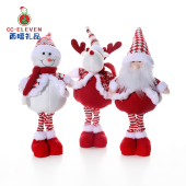 北欧圣诞新品红色布艺伸缩圣诞老人雪人麋鹿公仔圣诞节玩偶装饰品