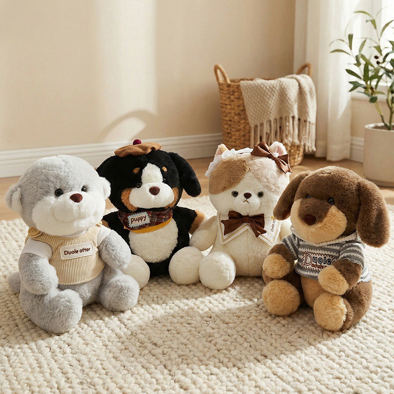 派对动物毛绒玩具坐姿毛衣狗狗猫咪抱睡娃娃水獭孩子生日礼物玩偶
