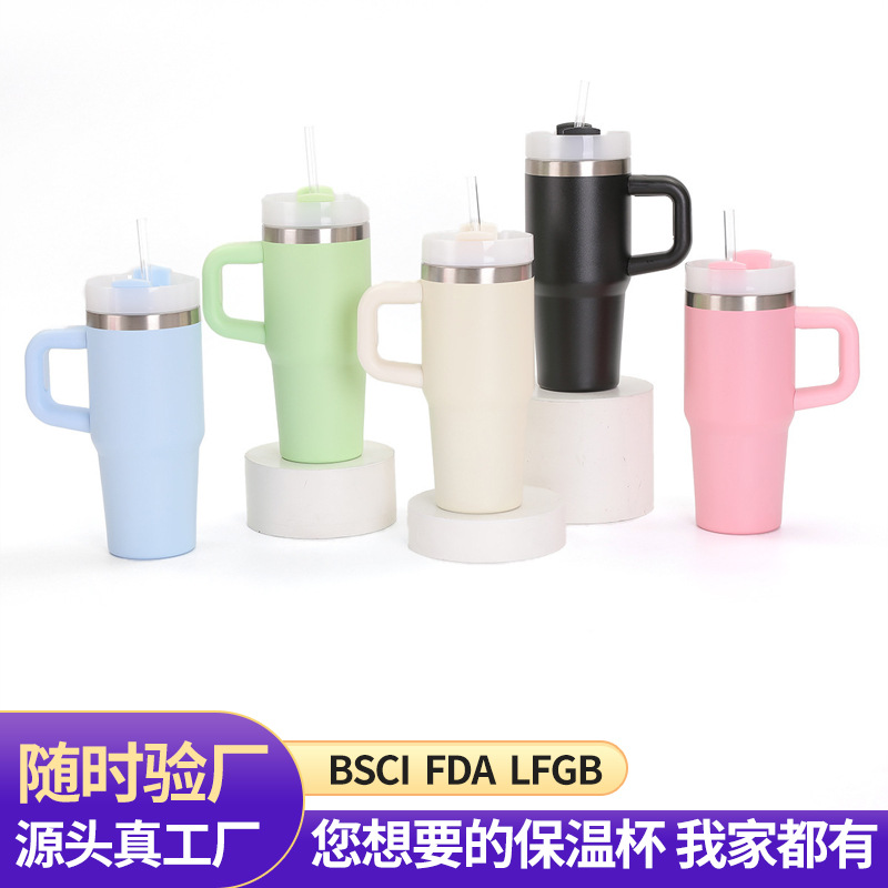 外贸304不锈钢冰霸杯车载30oz吸管汽车杯带手柄大容量保温杯批发