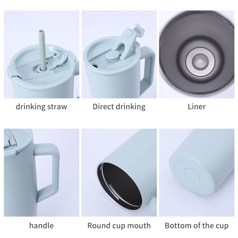 跨境304不锈钢保温杯大容量带手柄真空吸管杯便携车载办公冰霸杯