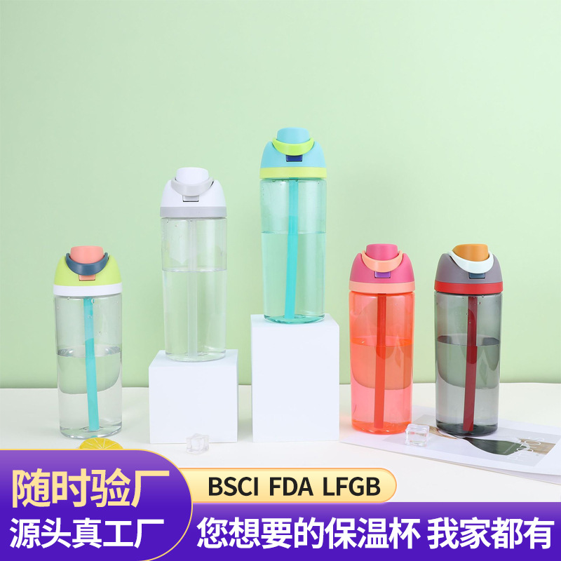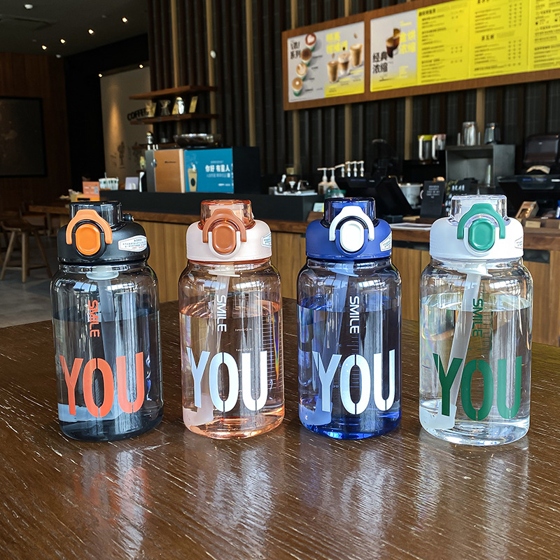 现代简约学生大容量塑料吸管太空杯学生夏季便携男女提手运动水瓶